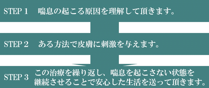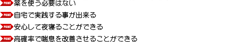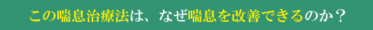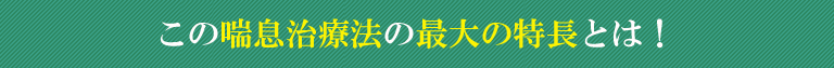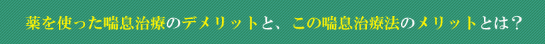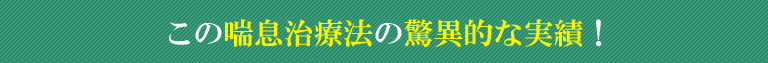 ですが、この方法は薬を使わないため、副作用もなく、喘息の原因そのものを治療するため、一般の治療法に比べて短期間で改善出来る画期的な方法です。