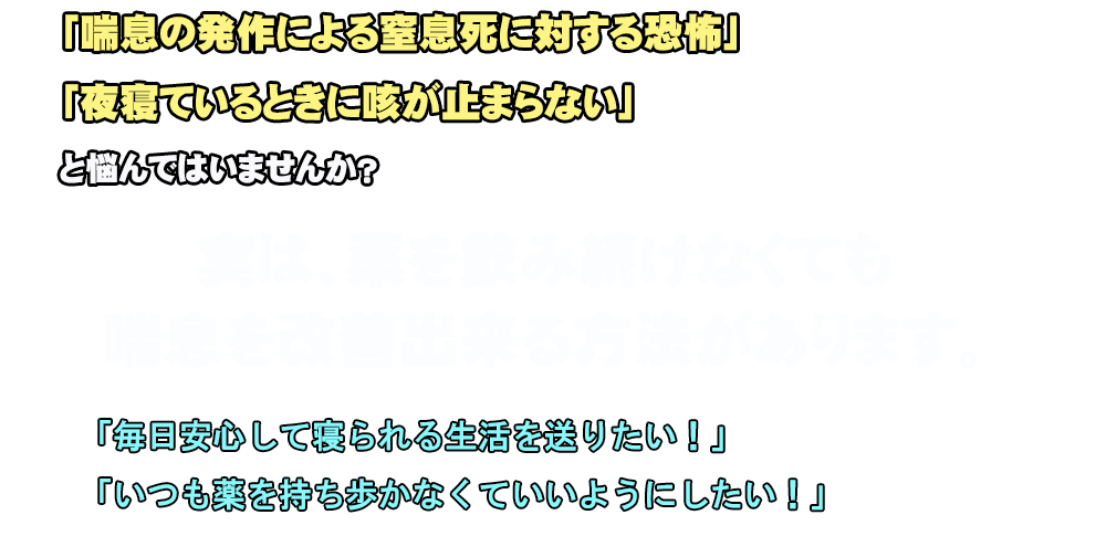 あなたの喘息は解消され、夜も安心して寝られることでしょう。