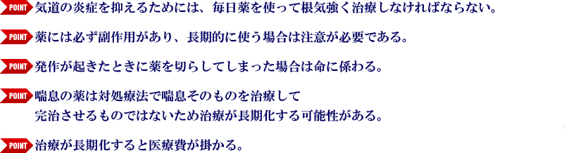 この悪循環を防ぐためには、気道の炎症を毎日気長に治療することが大切なのです。