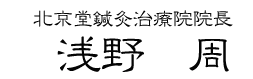 「北京堂鍼灸治療院 浅野周先生」へのお問い合わせは、施術の妨げになりますのでご遠慮下さい。