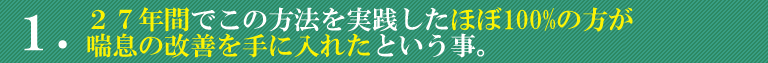 1、27年間でこの方法を実践したほぼ100%の方が喘息の改善を手に入れたという事。